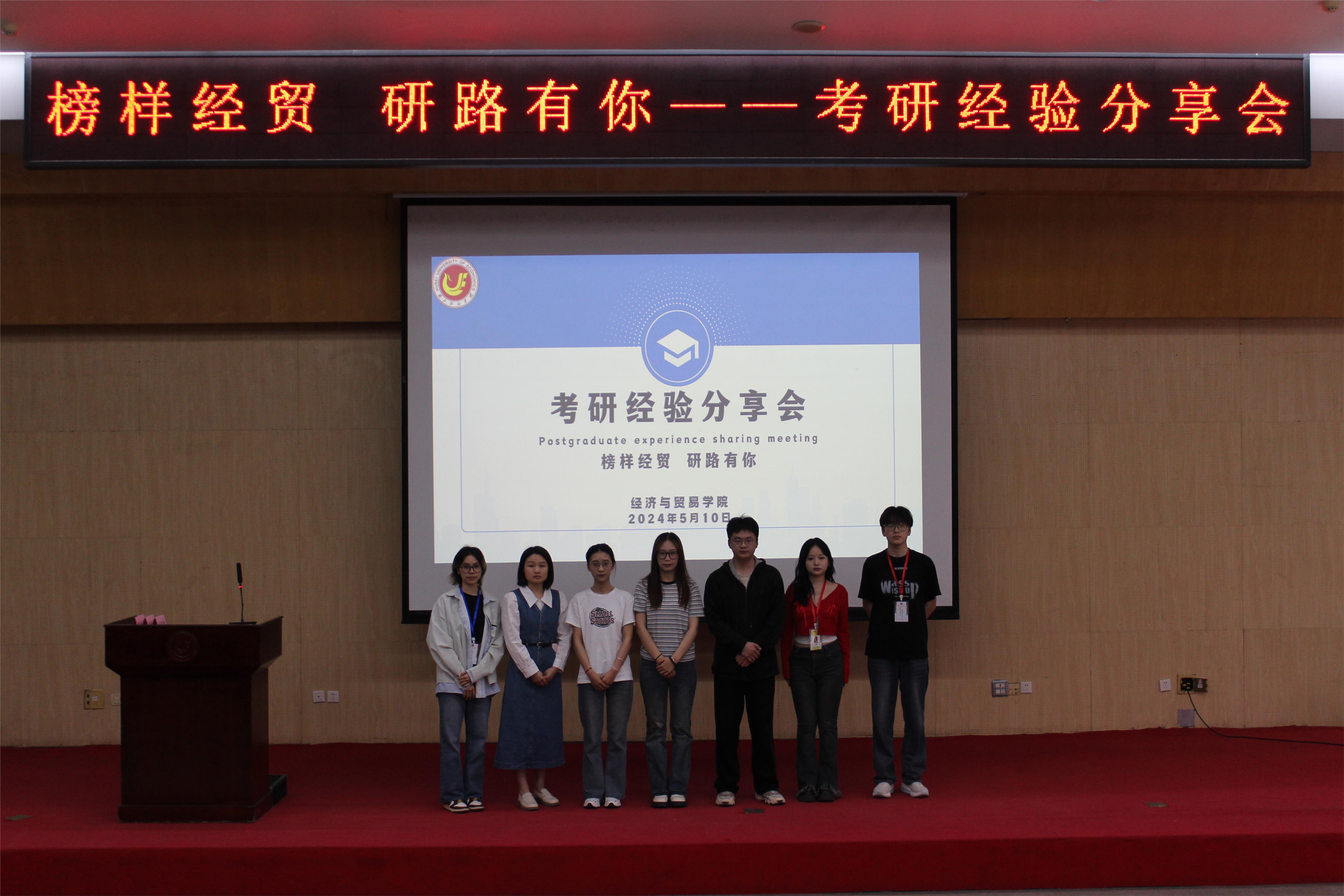 本网讯(通讯员 范塨成)5月10日下午,我院在大学生活动中心二号报告厅举行“榜样经贸 研路有你”的考研经验分享会。本次活动邀请了我院2020级邓晓蓉、隗诗雨、郭俊峰三位考研上岸学生代表做分享,全院近300名学生参加。