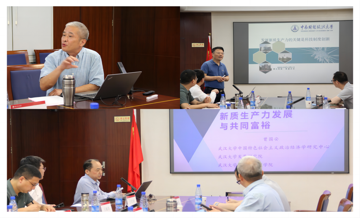 519日,“新质生产力与现代产业体系建设”学术研讨会在我校行政楼四楼会议室举行,省直相关部门、武汉大学及中南财经政法大学的专家,我院与金融学院、马克思主义学院、低碳经济学院的研究人员齐聚一堂,共同深入剖析新质生产力与现代产业体系建设面临的挑战与机遇。