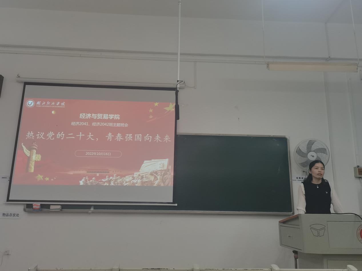 (通讯员:邓晓蓉 黄超 孙悦悦)为学习好、宣传好、贯彻好党的二十大精神,在班主任祝琴老师的倡导下,betway唯一官网必威中文官网电话查询经济2041班与经济2042班同学分别在学校食堂、图书馆、教室、寝室等场所,观看党的二十大开幕会,并于10月16日下午5点在学校教2-111教室召集班上同学开展“热议党的二十大 青春强国向未来”主题班会活动。祝琴要求同学们以经济学专业视角来学习党的二十大精神,用专业知识领悟党的二十大报告。主题班会上,同学们积极踊跃发言,纷纷表示党的二十大精神振奋人心。