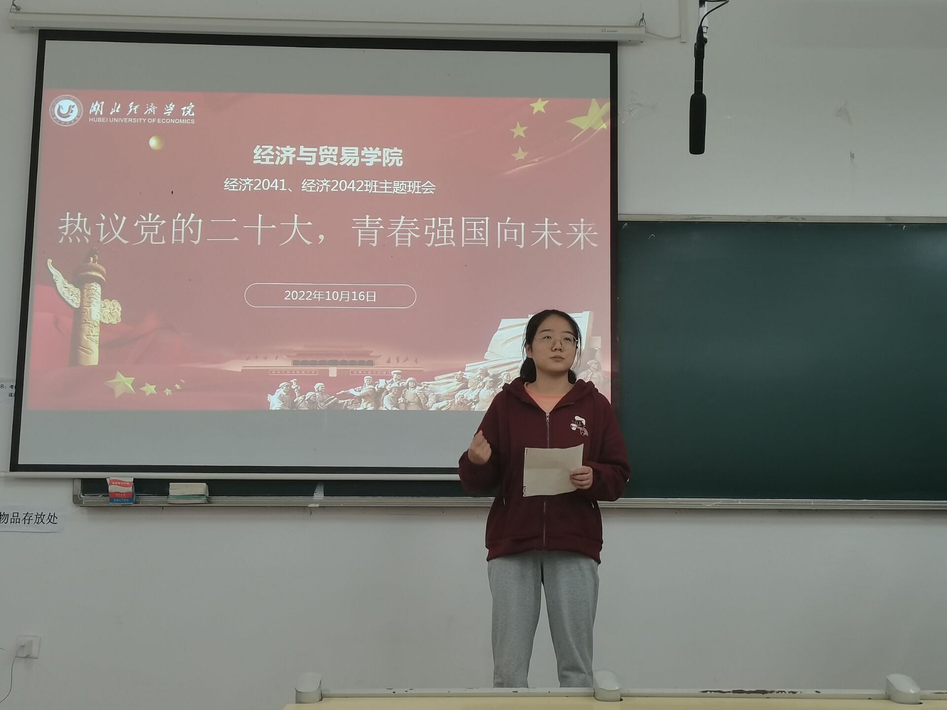 经济学2042班邓晓蓉以预备党员的身份分享她的心得体会,她指出,过去十年,中国共产党抗住压力,以不变的伟力续写了中国发展的新变化、新成绩。青年学生在新征程上,要以更加勇毅的决心,更加昂扬的奋斗精神,昂首阔步地走向全面建设社会主义现代化国家的光明大道。