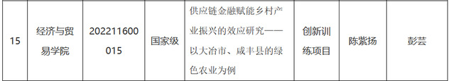 本网讯(通讯员 吴鹏)近日,教育部高等教育司公布2022年国家级大学生创新创业训练计划(以下简称“大创计划”)项目和重点支持领域项目名单。我校此次获批国家级项目21项(含重点支持领域项目1项),其中我院有两项获批国家级项目。