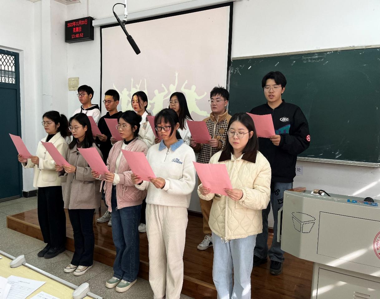 本网讯(通讯员 廖兴威 祝琴)为考察入党发展对象的政治素质,知识水平,帮助其端正入党动机,我院学生党总支于2022年11月20日在教2-103、105、107教室举办2022下半年入党发展对象主题展示会,学院学生党总支书记祝琴老师参加。发展对象共分为6个小组,各小组以PPT加情景剧表演形式开展主题展示,党员评委针对发展对象的入党动机、党团知识、时事热点等问题进行提问。