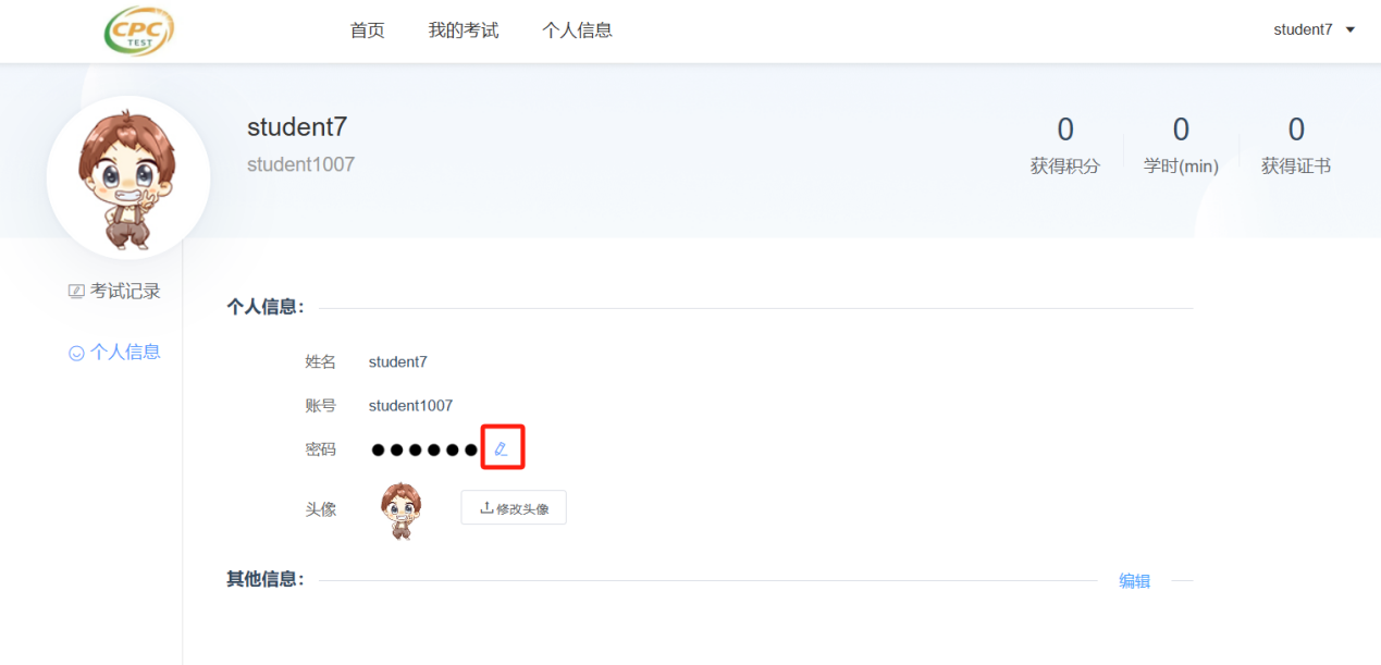 点击“测试登录”进入个人登录页面,考生输入个人学号和初始密码;