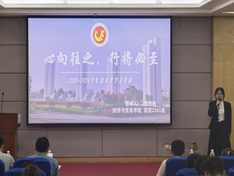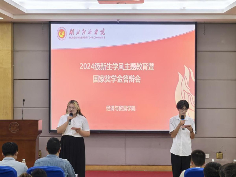 答辩会现场,气氛紧张而热烈。各位候选人围绕学业情况、科研竞赛、社会实践、志愿服务、学生工作等方面进行了精彩的演讲,并向大一新生分享了自己的学习经验和心路历程。在问答环节,候选人们以敏捷的思维、流畅的表达赢得了评委和观众的阵阵掌声,展现出了经贸学子良好的综合素养。经过激烈角逐与严格评审,最终,商经2242班江立芸和国贸2241班周雅晴获得了国家奖学金的推荐资格。