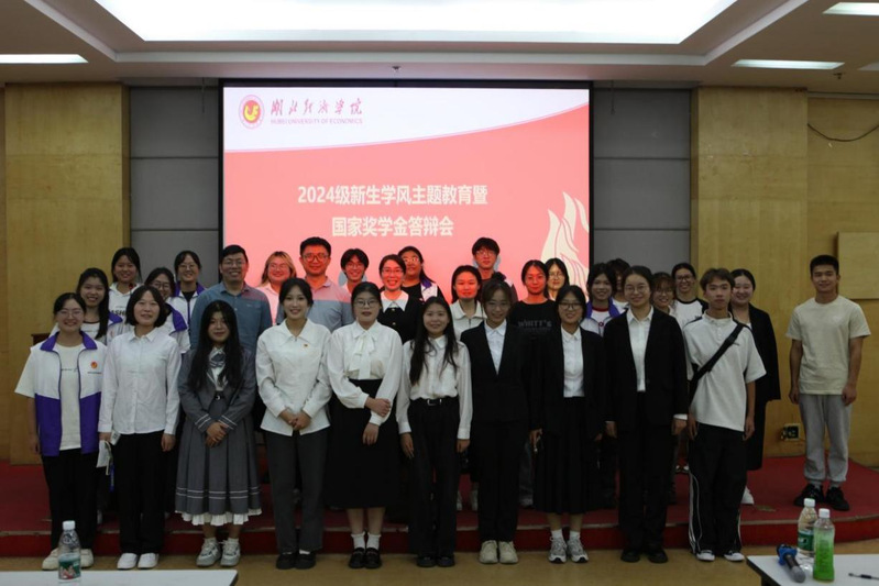 本网讯(通讯员杨婧垚)2024年10月11日晚,我院于大学生活动中心三号报告厅举行了2024级新生学风主题教育暨国家奖学金答辩会活动。学院党委副书记丁升、经济学系副主任邬昶俊、经济领航2441班班主任樊正德、2023级学生辅导员陈白鸽、2024级学生辅导员陈雪颖及四位学生代表担任此次活动评委,9位候选人参加答辩,大一新生参加活动。