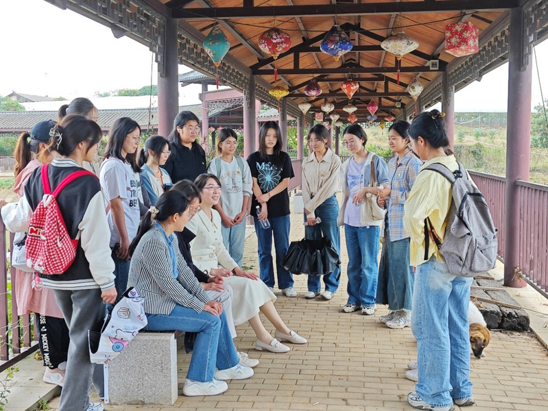 随后教师与学生深入小朱湾,通过实地走访,师生直观感受到了在乡村振兴政策下小朱湾的蜕变。当地居民向师生介绍几年前小朱湾还是名不见经传的“失地村”和“空心村”,通过美丽乡村建设,以“市民下乡、能人回乡、企业兴乡”三乡工程为抓手,利用当地的历史文化底蕴与自然风景优势,小朱湾走出了独具特色的生态旅游发展之路。以小朱湾为案例,师生就乡村如何以自身优势实现可持续性发展进行了交流。