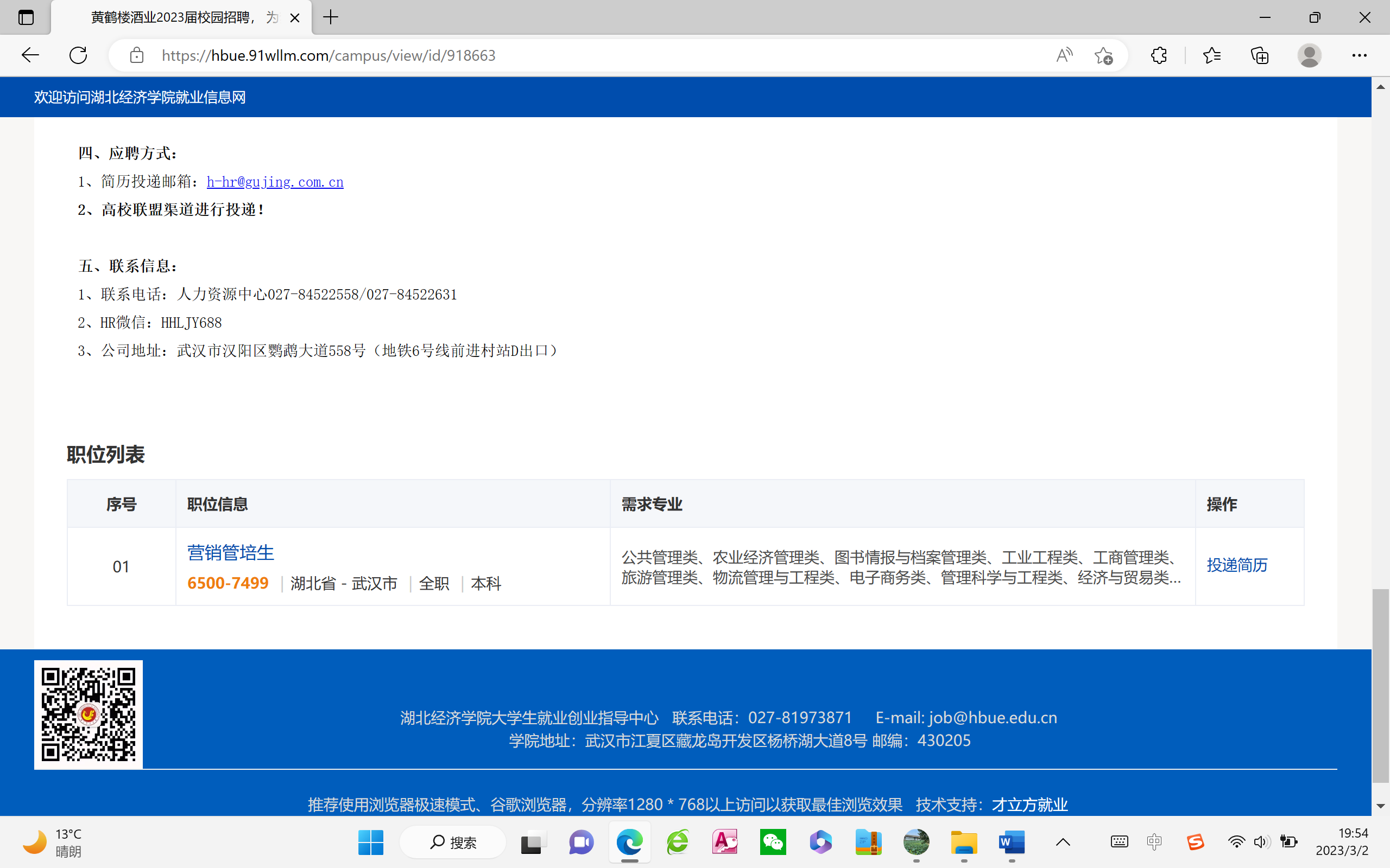 ①2023届应届毕业生,本科及以上学历,市场营销/金融/国贸/工商管理等经管类专业优先,其他专业择优录取;