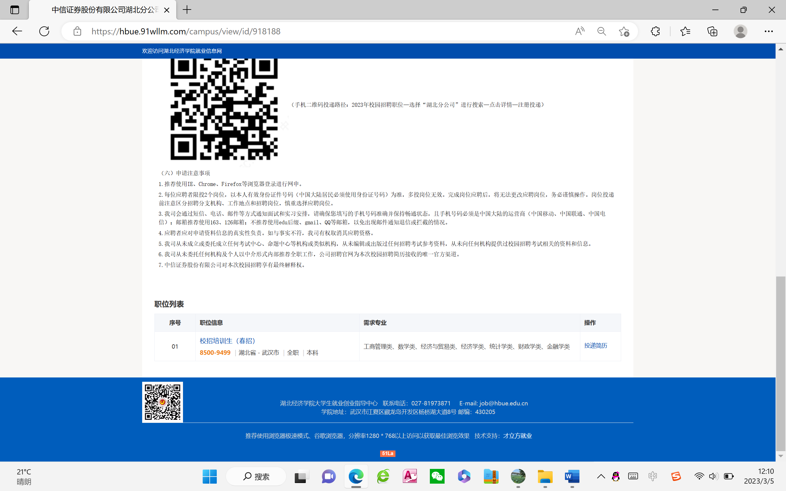 中信证券股份有限公司湖北分公司招聘信息