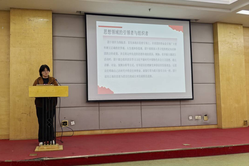 活动中,我院团委副书记崔子菡深入阐释了团员和团干部在团组织中的重要意义。她指出,团员作为广大青年中的先锋队,肩负着传承团组织优良传统、践行社会主义核心价值观的重任。在学习生活中,应时刻以团章为准则,积极投身各类活动,充分发挥模范带头作用,为团组织的蓬勃发展贡献青春力量。而团干部更是团组织的中流砥柱,担当着思想引领的灯塔、活动策划的智囊、团队凝聚的核心等关键角色。她勉励大家不仅要在理论学习上走在前列,深刻领会党的先进思想,将其精准传递给每一位团员,更要激发团队的创新活力与协作精神,以自身的榜样力量带动全体团员共同进步。