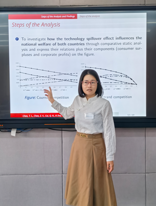 邹宇翔于12月4日下午在主旨为“企业行为,市场结构及资源配置”的16号分会场报告了论文“Consumers Interests, Quality Heterogeneity and Intellectual Property Rights Protection”,通过25分钟的报告展示及5分钟的提问讨论环节,在场的10多位专家学者进行了热烈的学术交流。会议期间,共有400多位分别来自中国、美国、日本、法国、德国、新加坡、英国、加拿大、澳大利亚等国家高校和科研机构的代表参加了广泛的学术讨论,其中包括来自美国耶鲁大学的Larry Samuelson教授与来自英国剑桥大学的Oliver Linton教授等分别作了大会报告。会议还设置了98个分会场,与会代表分别就金融计量经济学、国际经济学、微观经济理论、贝叶斯计量经济学、产业组织、网络模型理论、货币政策等专题展开广泛的学术交流。