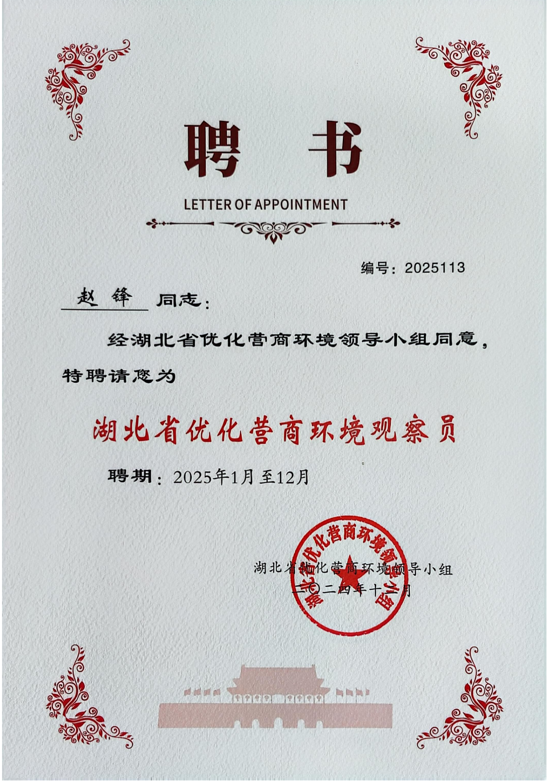 我省高度重视营商环境观察员和监测点工作。2025年度观察员及监测点在全省各类企业、中介机构、商会协会、新闻媒体、高校智库等领域中择优选出。观察员制度成为促进政企沟通的“连心桥”、稳定市场预期的“压舱石”、积极建言献策的“智囊团”、敢于揭短挑刺的“校正仪”、推动政策落实的“助推器”、尽心履职担当的“排头兵”,为湖北省持续优化营商环境、出台相关政策提供了重要参考。