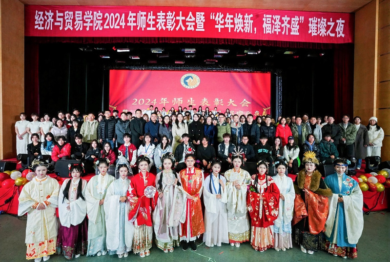 本网讯(通讯员黄颖萱)12月22日晚,我院于大学生活动中心一号报告厅盛大举行2024年师生表彰大会暨“华年焕新,福泽齐盛”璀璨之夜晚会。学院党委书记蒋琼、党委副书记丁升、副院长乔长涛、副院长马玉霞、系主任等学院领导,2007至2019届校友代表、各年级班主任、辅导员老师及全院学生欢聚一堂,表彰先进,喜迎新年。
