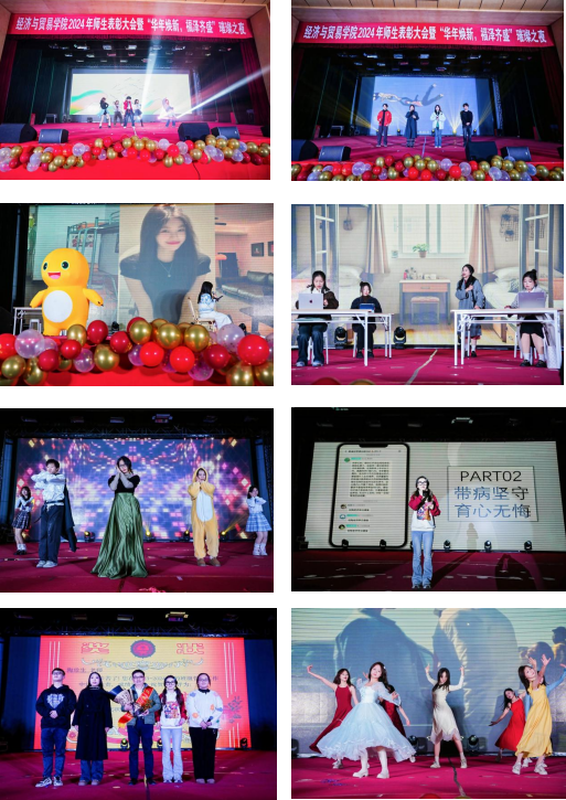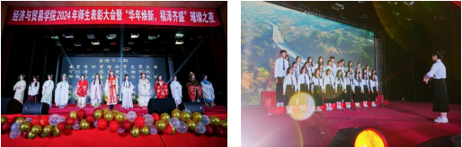 晚会共分为三个篇章“忆·往昔时光”“赴·当下征程”“逐·明日绮梦”。在院舞蹈队燃爆全场的《舞动青春》中拉开帷幕,院声乐队带来的歌曲串烧《美好事物》将经典与时尚、动感与深情完美融合,带领同学回顾了成长青春里的喜悦与伤痛。经济2243班带来的情景剧《湖经奶龙成长记》以可爱搞怪的方式警示同学们网恋要谨慎、体侧代跑要不得,国贸2341班的情景剧《谁说这AI不好啊》在欢声笑语中引发同学们对人工智能的辩证思考,经济2241班在《夸夸我的班主任》节目中讲述了班级同学与“地表最强班主任”的“爱恨交织”,现场师生热泪盈眶。经济2441班的歌舞节目《达拉崩吧》及国贸2441班的舞蹈《Another Day of Sun》传递出浓浓的青春活力。由我院经济2242班陆璐领衔指导、多个学院学生共同参演的汉服秀《一梦红楼》则将大家带到那个风华绝代、才子佳人辈出的璀璨时代,感受传统文化的魅力。伴随着大合唱《最初的梦想》的悠扬旋律,晚会落下帷幕。本次晚会主题鲜明,形式新颖,通过丰富多彩的节目,为同学们打造了一节沉浸式的思政课堂,通过师长引领、朋辈示范,凝聚了经贸学院的榜样力量。