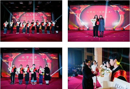 在这群星璀璨的星光浪漫之夜,学院表彰了在过去一年表现卓越的师生。在优秀学生表彰环节,学院为国家奖学金获得者、“美乐维”校友奖学金获得者、大学生“自强之星”及第七届必威中文官网电话查询“十佳大学生”颁发荣誉证书并赠送鲜花。在优秀教师表彰环节,优秀班主任、优秀辅导员、暑期社会实践优秀指导老师佩戴荣誉绶带,迎接同学们的敬礼和献花。本次表彰大会既是过去一年学院师生优秀成果的总结与肯定,更为新一年的学院发展吹响了激昂奋进的号角。