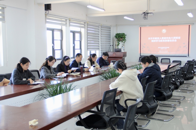 学院党委书记蒋琼对学院学习教育做动员部署。一是提高政治站位,增强政治自觉,深刻认识开展中央八项规定精神学习教育的重要意义。注重主题聚焦与务实高效相统一,充分认识中央八项规定是党的纪律要求的重要体现,深入贯彻中央八项规定精神学习教育,是巩固深化主题教育和党纪学习教育成果、纵深推进全面从严治党的重要举措,是密切党群干群关系、巩固党的执政基础的必然要求。我们要增强开展学习教育的政治自觉,筑牢“两个维护”的思想根基,增强加快建设教育强国的使命感责任感。二是明确工作重点,把握关键环节,一体推进学查改。注重常态长效与日常融入相结合,把学习教育、查摆问题、整改落实贯穿始终,全面深入查找落实中央八项规定及其实施细则精神方面存在的问题,确保查有力度;要推动警示教育与日常监督并行不悖;要坚持以学促干,在理论学习的基础上,深入开展调查研究,把调研成果转化为改进工作、推动发展的实际成效。要坚持边学边查边改,坚持“当下改”与“长久立”相结合,做好完善机制、建章立制的工作,并强化制度的刚性执行,防止问题反弹。三是强化组织领导,狠抓落地落实,推动学习教育见行见效。要统筹兼顾,明确责任分工,确保学习教育有序开展;要聚焦主题重深化,确保学有质量,领导干部要带头学,广大党员要深入学,以“关键少数”带动“绝大多数”;组织党员、干部立足岗位,集智聚力办实事、解难事、促发展,让广大师生可感可及;要充分利用各种宣传渠道和平台,广泛宣传学习教育的重要意义、目标要求和主要内容,营造浓厚的学习氛围;要突出清廉文化,与学院政治生态分析研判、廉洁文化品牌创建相结合,营造崇尚廉洁的良好氛围。