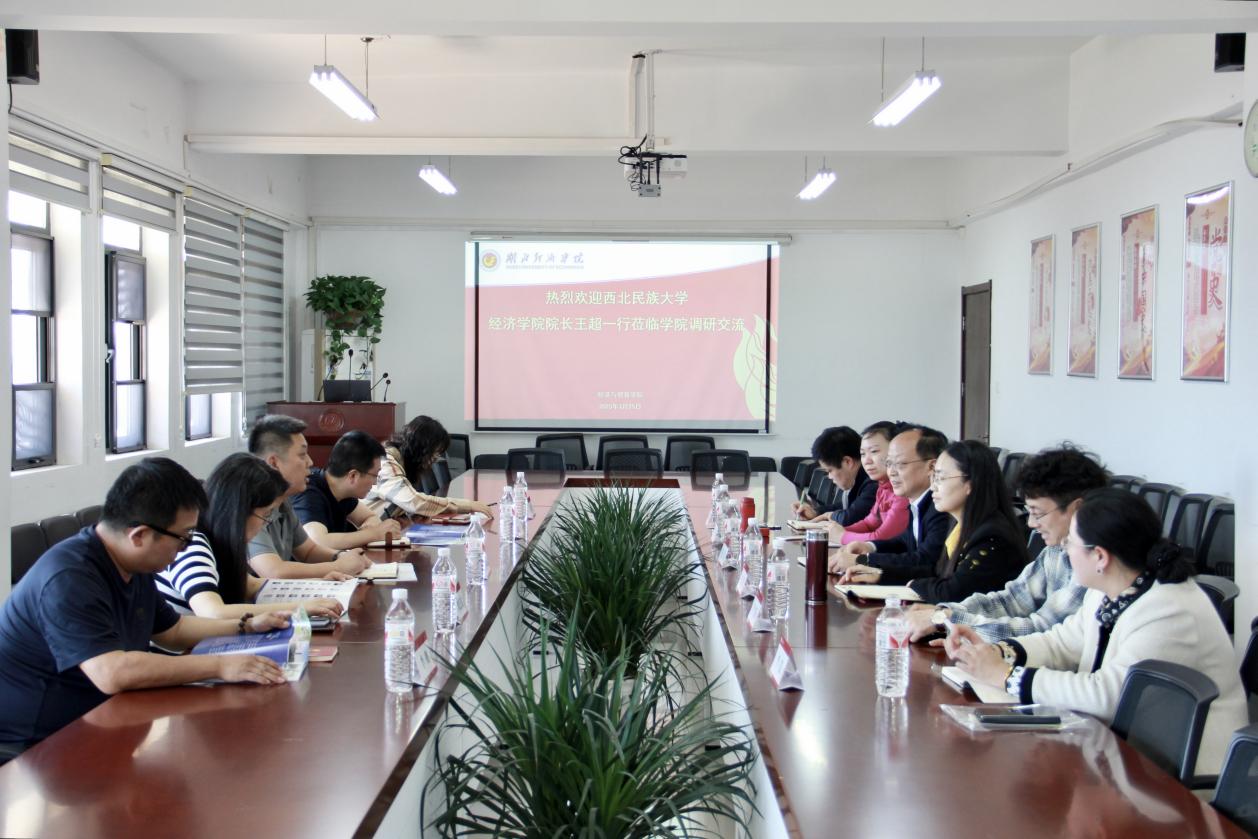 本网讯(通讯员:李霞摄影:李珊)3月25日下午,西北民族大学经济学院院长王超教授一行五人莅临我院进行调研。我院党政领导班子成员、各系主任出席了调研座谈会。