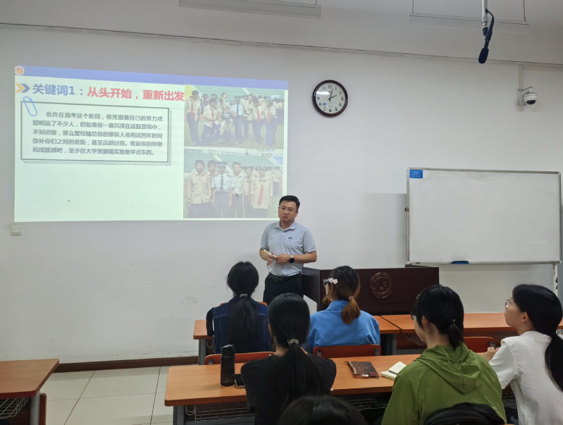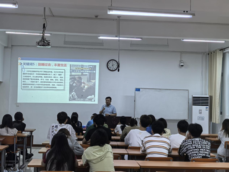 靳老师指出,大学是人生的新篇章,他鼓励同学们以积极的心态迎接挑战,并用湖北工业大学学生成功考入斯坦福大学的实例,生动诠释了大学四年的无限潜力和机遇。在人际关系方面,靳老师提醒同学们用心经营室友关系,构建和谐寝室氛围学业规划方面,要对专业负责,明确考研、出国或就业目标并尽早准备。同时,靳老师也鼓励同学们勇于走出课堂,积极参与学科竞赛、社团活动、社会实践等,充分利用图书馆资源,不断充实自己,实现学习与生活的良好平衡。