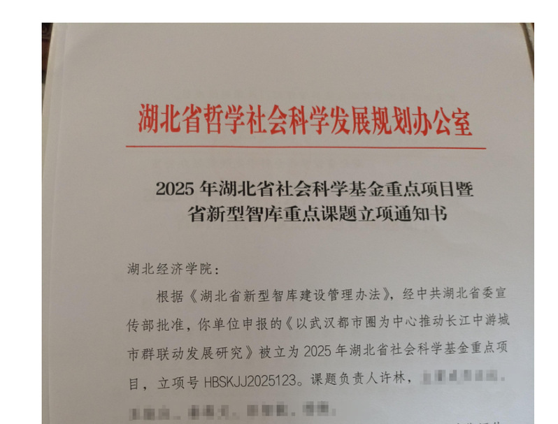 日前,湖北省哲学社会科学工作办公室公布了2025年湖北省社科基金重点项目暨省新型智库重点课题立项名单,我院许林教授申报的《以武汉都市圈为中心推动长江中游城市群联动发展研究》获批2025年湖北省社科基金重点项目,本次立项为必威中文官网电话查询2025年科研工作再次注入新活力,将有力推动学院在科研领域的快速发展和整体水平的提升,学院也将继续坚持做好有组织的科研活动,助力应用经济学学科高质量发展。
