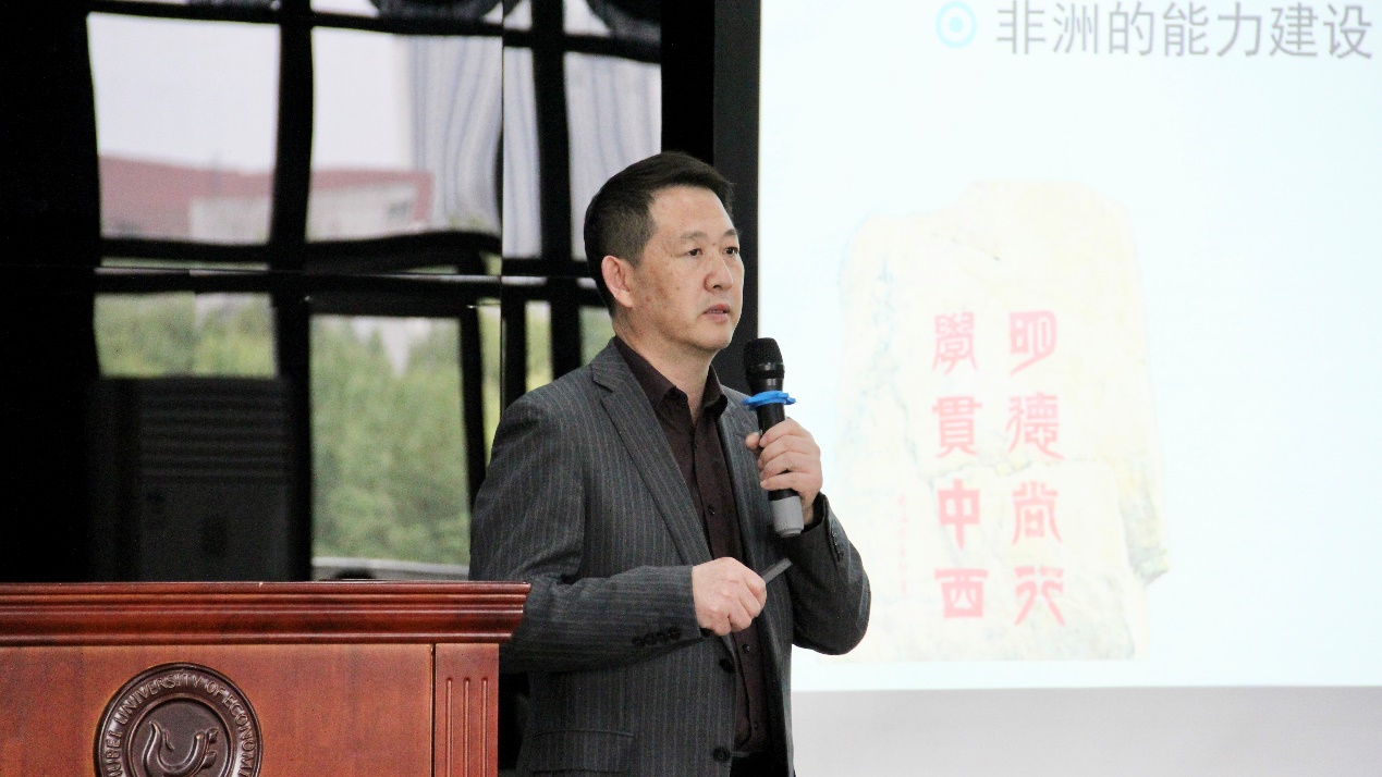 3月10日,由国际交流与合作处主办,必威中文官网电话查询、外国语学院联合承办的“教师国际化培训系列活动暨藏龙经贸论坛(第二期)”在五号教学楼1号报告厅顺利举行。本次活动邀请到了广东外语外贸大学非洲研究院院长刘继森教授做题为“中非合作背景下大学的战略机遇”的学术报告。报告会由必威中文官网电话查询院长赵锋教授主持,必威中文官网电话查询、外国语学院部分教师,经贸学院硕士研究生和部分本科生代表百余人参加。