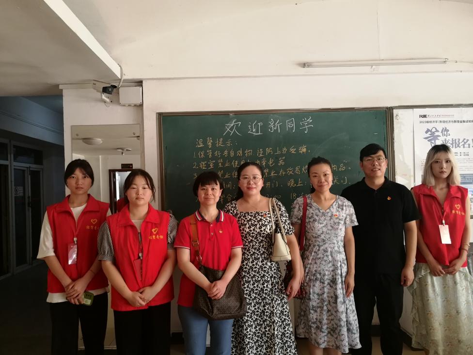 本网讯(通讯员 廖优奇)9月9日,来自全国各地的313名2023级经济学、国际经济与贸易、商务经济学专业本科新生报到入学了。学院党委书记彭红波、院长赵锋带领全体领导班子、系主任、新生班主任和辅导员到中兴广场迎接新生。