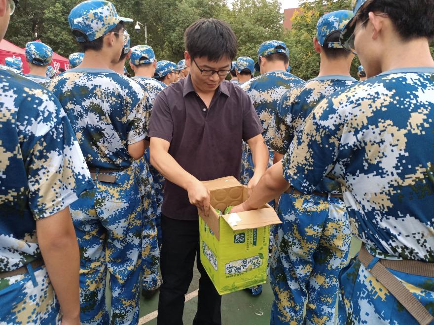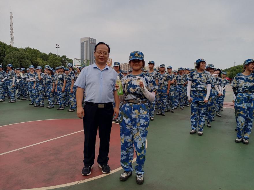 本网讯(通讯员 廖优奇)9月18日下午,学院党委书记彭红波、院长赵锋带领全体领导班子、系主任、新生班主任和辅导员到军训场地,亲切慰问了2023级军训新生及教官。