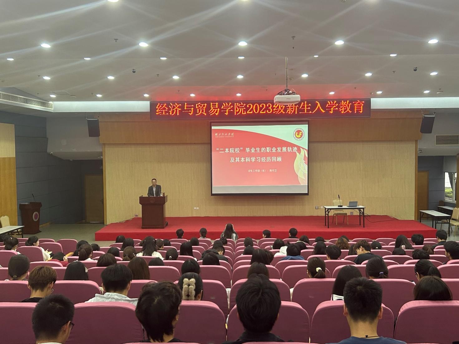 本网讯(通讯员 郭籽萱)11月9日下午,我院于大学生活动中心二号报告厅顺利开展2023级新生入学教育活动——“二本院校”毕业生的职业发展轨迹及其本科学习经历回顾。讲座由我校学生工作部部长商守卫主讲,我院党委副书记丁升主持,全体辅导员及大一新生参加。