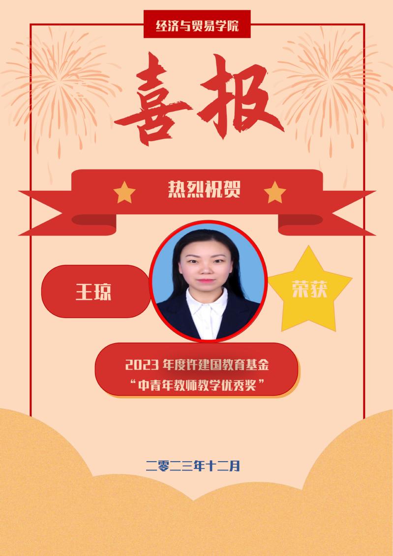 喜报!王琼老师喜获2023年度许建国教育基金“中青年教师教学优秀奖”