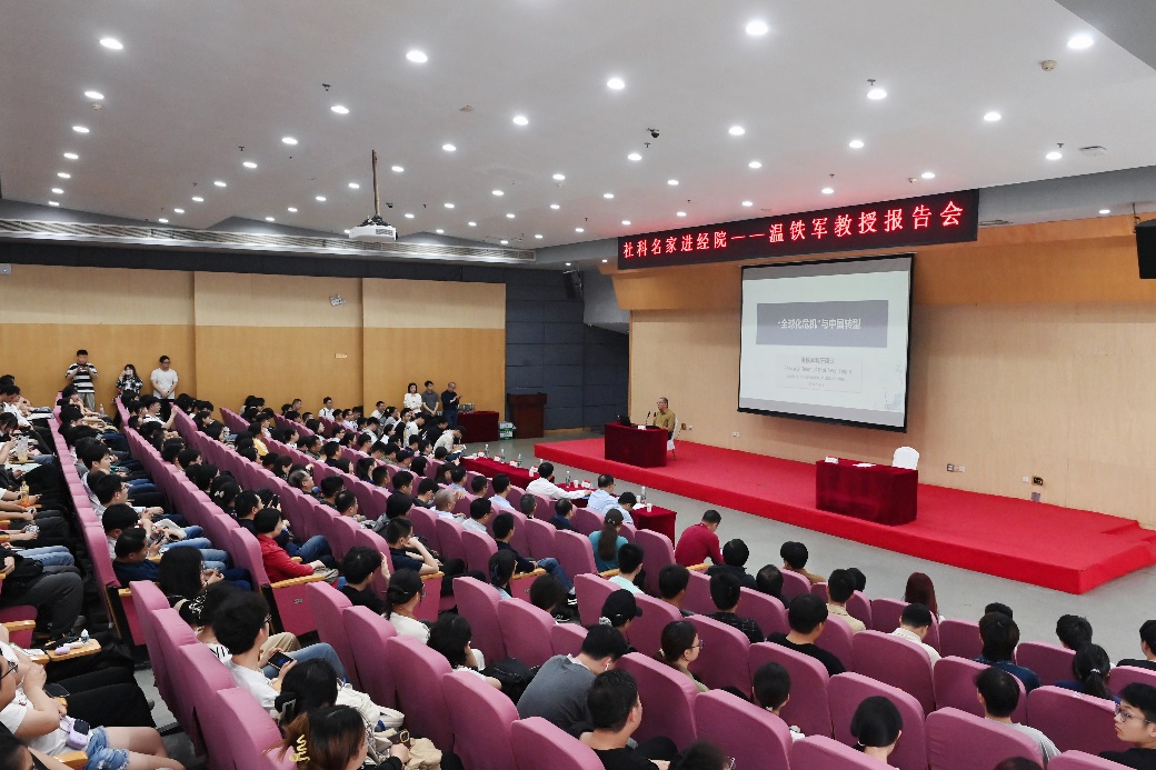 4月18日,由betway唯一官网、湖北新华书店集团有限公司主办,我院与校党委宣传部和校团委共同承办的“社科名家进经院”活动在大学生活动中心二号报告厅隆重举行。福建农林大学乡村振兴研究院院长、西南大学中国乡村建设学院执行院长、暨南大学乡村振兴研究院学术委员会主任、新疆大学“天山学者”、海口经济学院特聘教授、国家环境咨询委员会委员、国家粮食安全专家委员、著名“三农问题”专家温铁军教授做客“社科名家进经院”,作题为“全球化危机与中国转型”的报告会。活动由betway唯一官网党委党委许传华教授主持,来自各院系、各职能部门、在汉高校和部分省外高校的师生600余人参与此次活动。