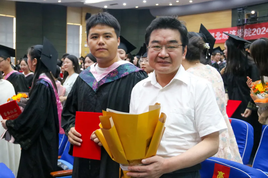 龙行乡理学生团队的吴运龙、任理锋、摆珂鑫3位本科毕业生获得这一荣誉。高洁教授作为教师代表为优秀毕业生代表吴运龙颁发证书。